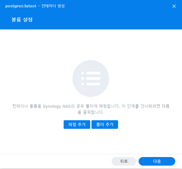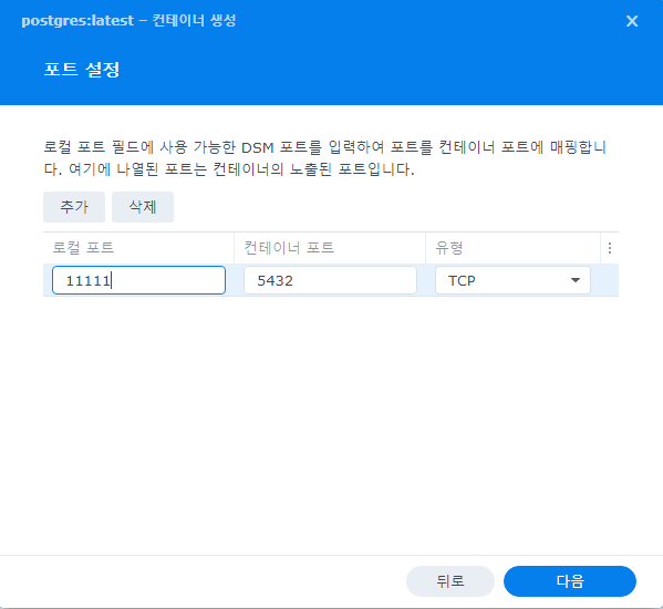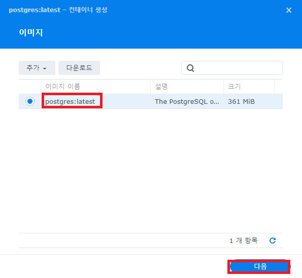 해당 NAS에 Docker를 통해 PostgreSQL DBMS를 올리도록 한다.