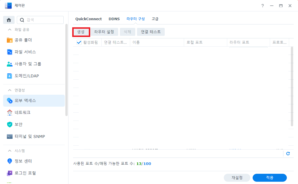 NAS에서 바로 적용할 수 없으면, 사용중인 공유기 등에서 포트포워딩 설정을 하도록 하자.