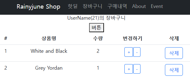 장바구니 페이지의 수량 변경 및 삭제 기능 구현