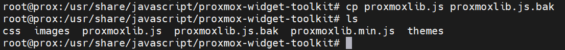 proxmoxlib.js를 편집할 것이므로 기존 파일을 백업해준다.