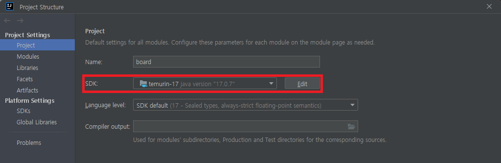 Project는 Gradle을 사용할 예정이고, Java는 Temurin의 OpenJDK 17.0.7을 사용했다.