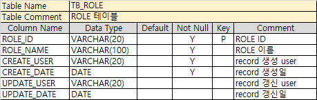 role은 tb_role에 현재 role_id='admin' record만 있어서 임의로 넣어놓은 것이다.